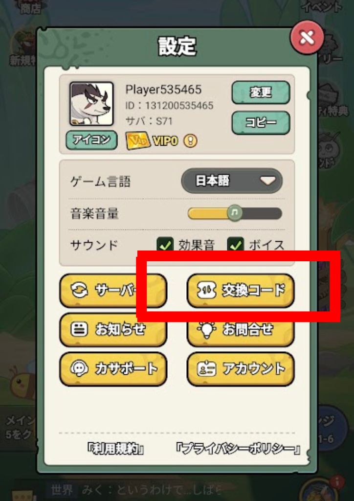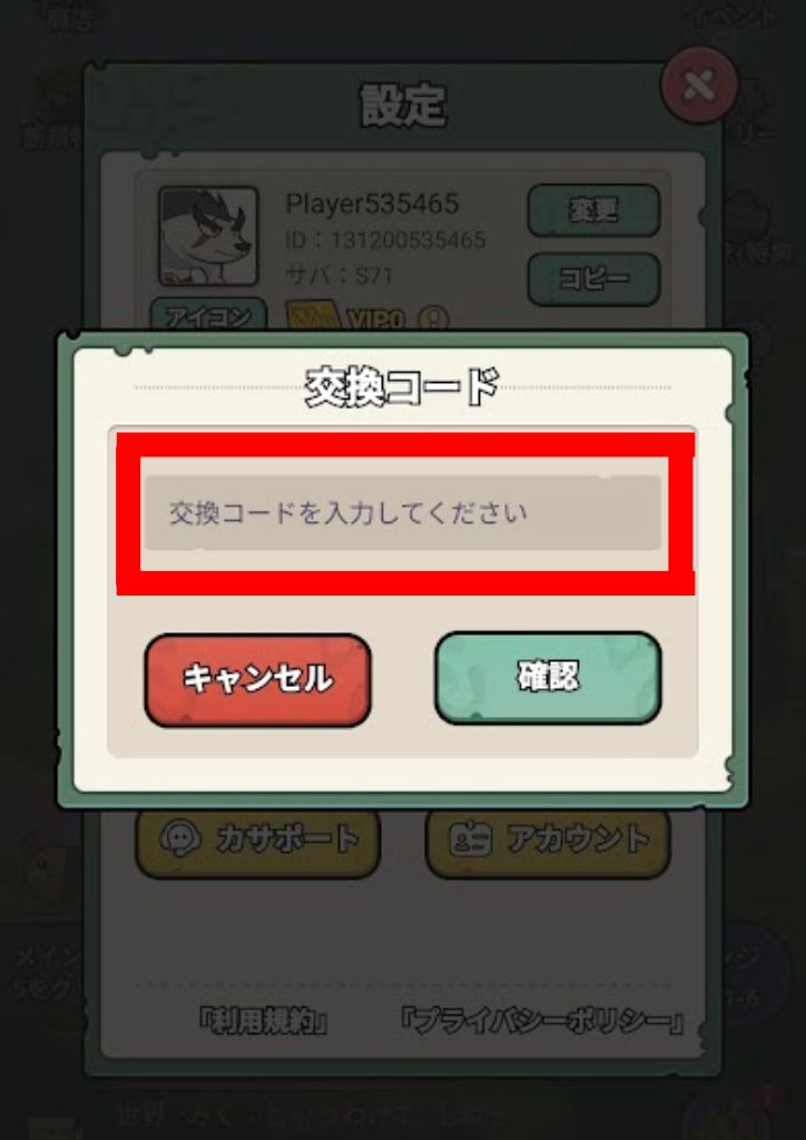 コードを入力します。確定することで報酬を獲得できます。