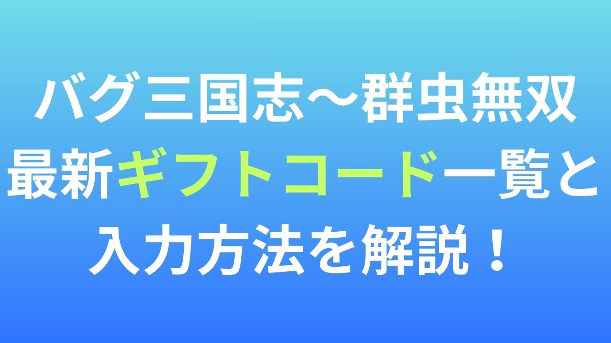 本記事では、バグ三国志~群虫無双の最新ギフトコード一覧と入力方法を画像付きで解説していきます。