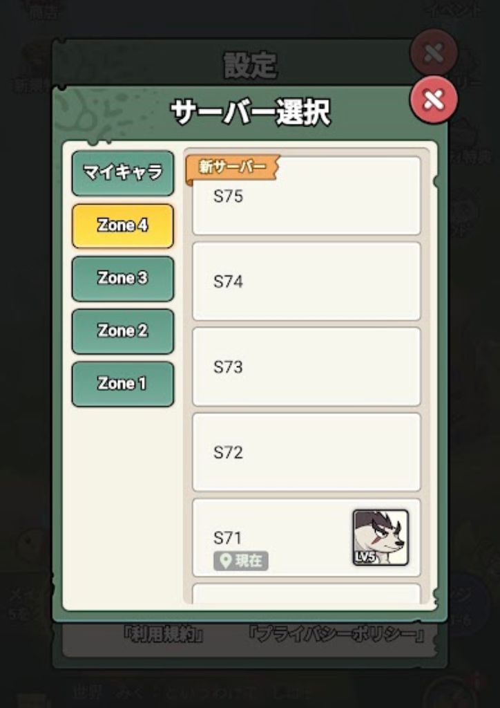 新たなサーバーを選択します。これで新たにゲームを開始することができます。