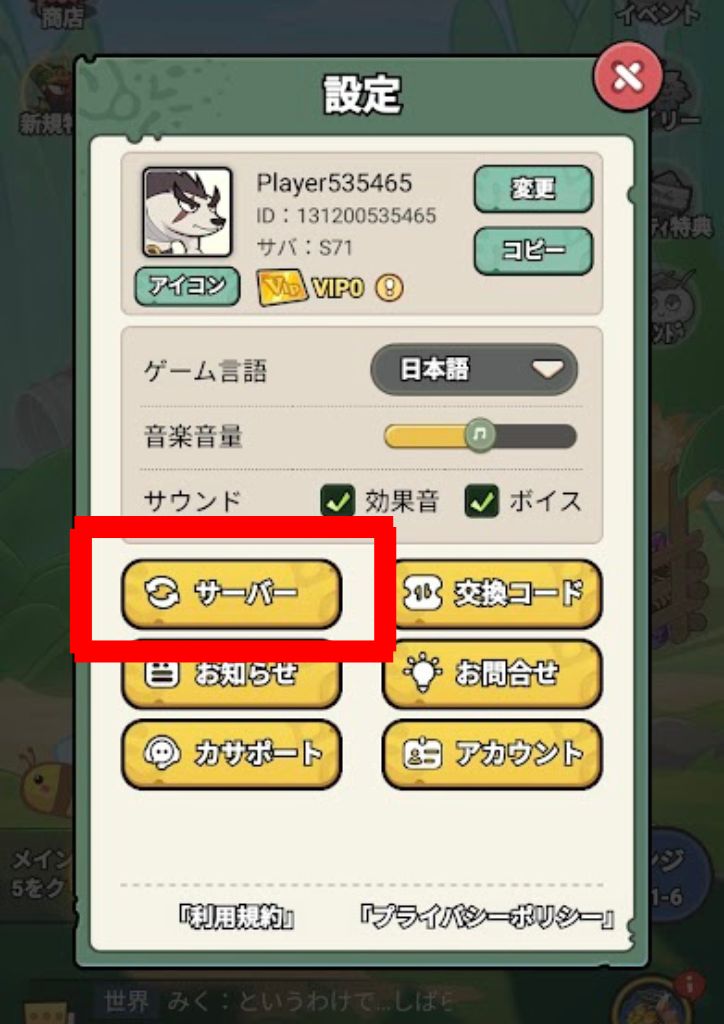 サーバーをタップします。