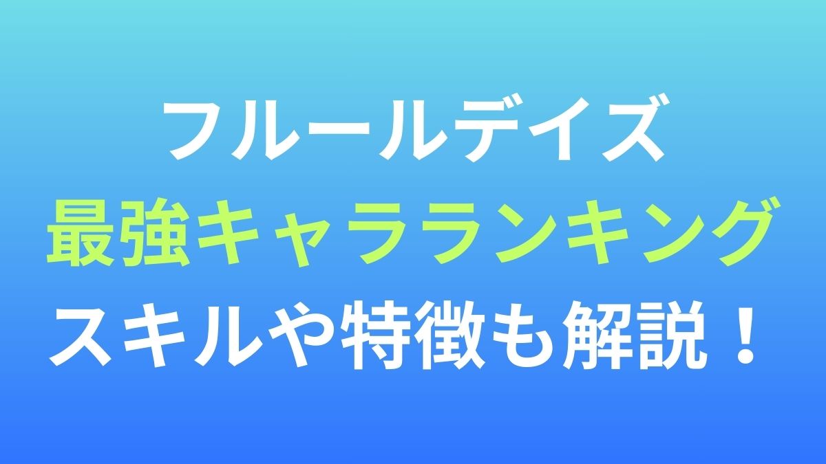 本記事では、フルールデイズ最強キャラランキング!スキルや特徴も詳しく調査していきます。