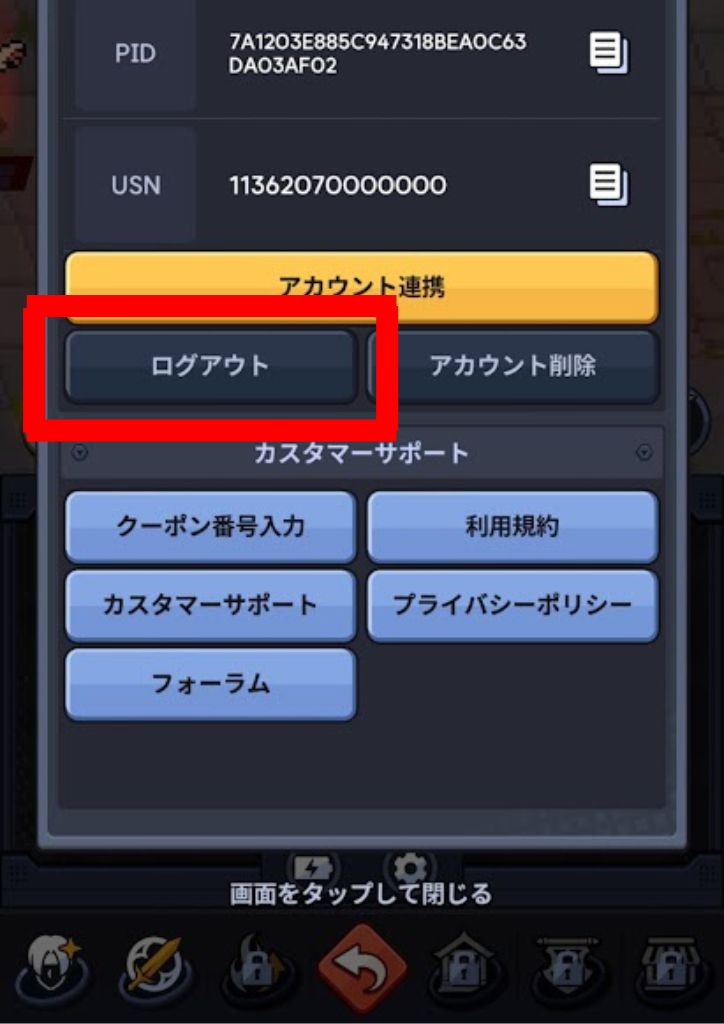 「ログアウト」をタップします。