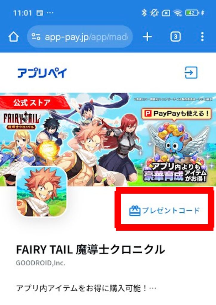 FAIRY TAIL 魔導士クロニクルの最新ギフトコード入力方法