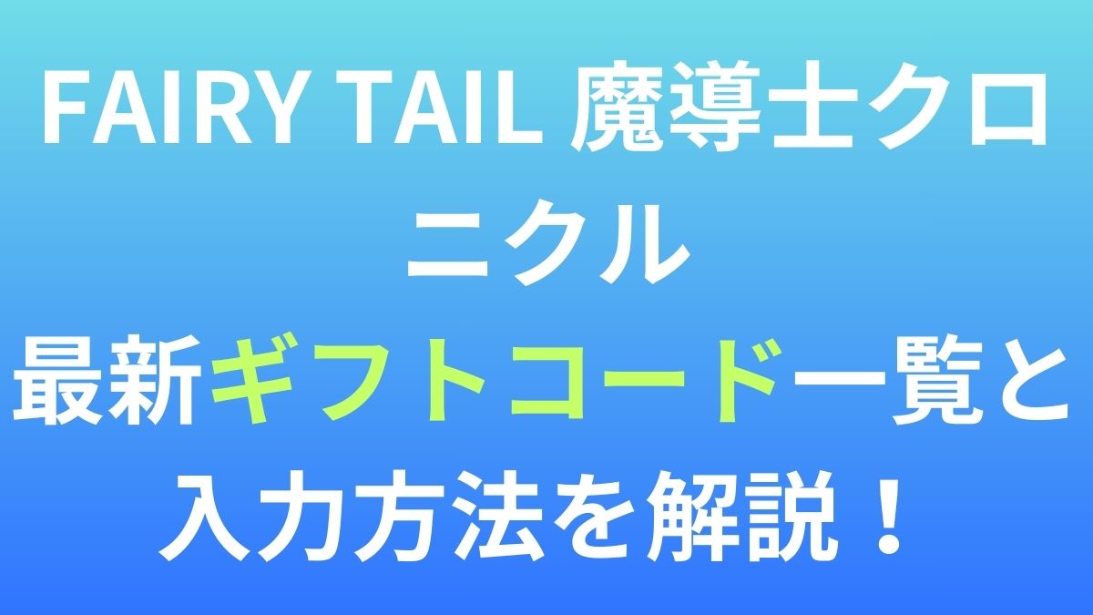 本記事では、FAIRY TAIL 魔導士クロニクルの最新ギフトコード一覧と入力方法を画像付きで解説していきます。