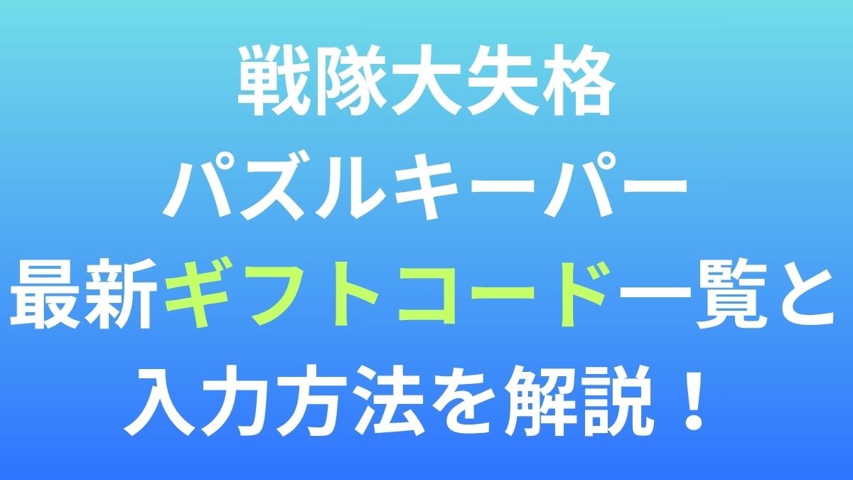 - 戦隊大失格 パズルキーパーの最新ギフトコード一覧